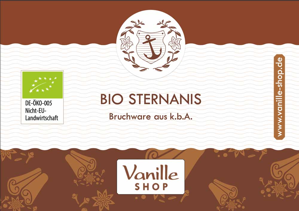 100g Bio Sternanis ganze Früchte als Bruchware aus k.b.A. in einem wiederverschliessbaren Aromabeutel
