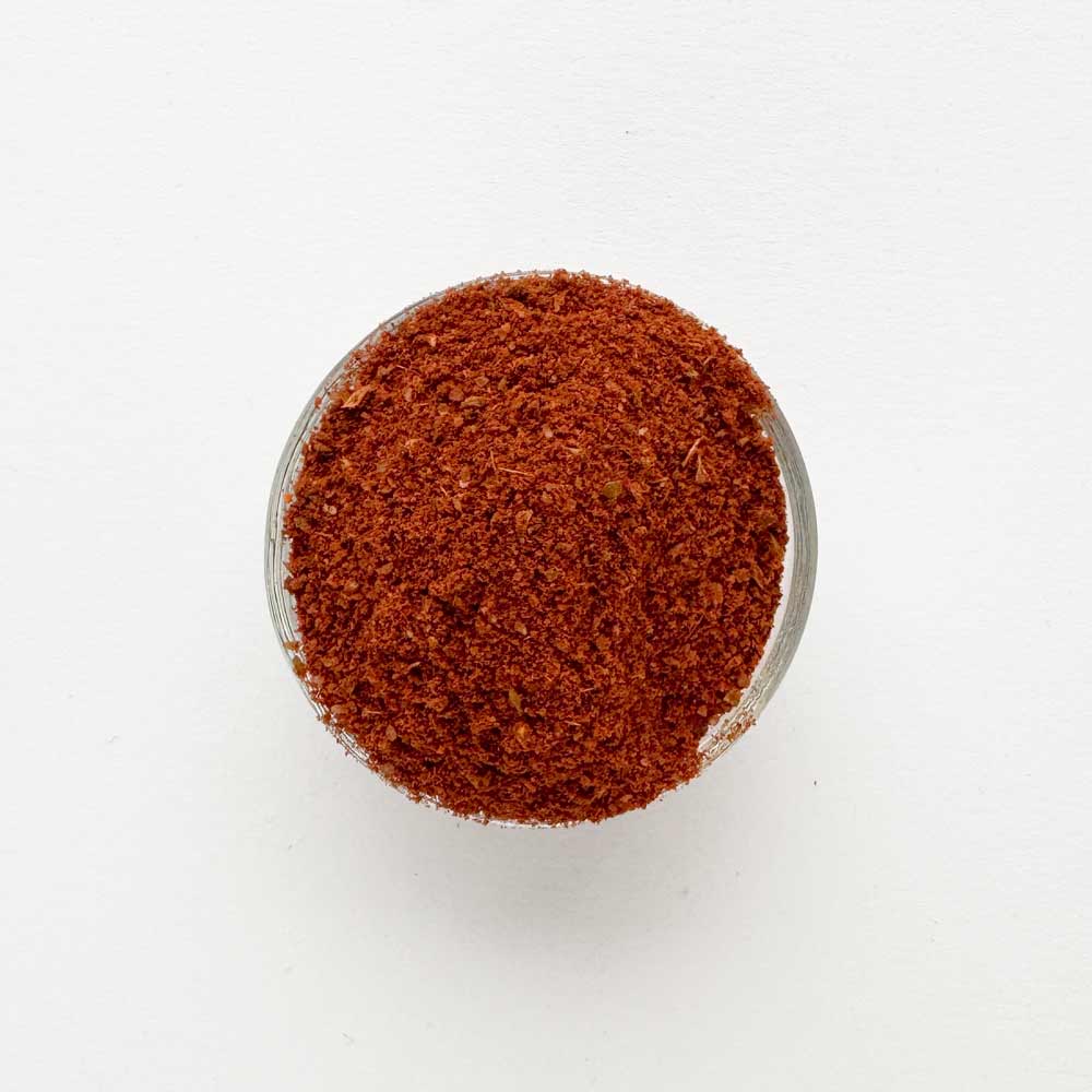 Zutaten: Meersalz, Paprika, Cumin, Cayenne-Pfeffer, Pfeffer schwarz, Pfeffer weiß, Kakaobohnen gemahlen, Piment, Oregano, Nelken, Ceylon-Zimt