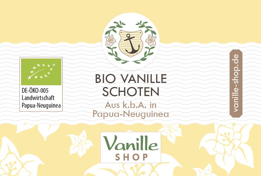 Diese Vanilleschoten sind vom Ursprung auf den Plantagen auf Papua-Neuguinea bis nach Hamburg in unserem Online Shop Bio zertifiziert, ohne Zusätze oder Schadstoffe.