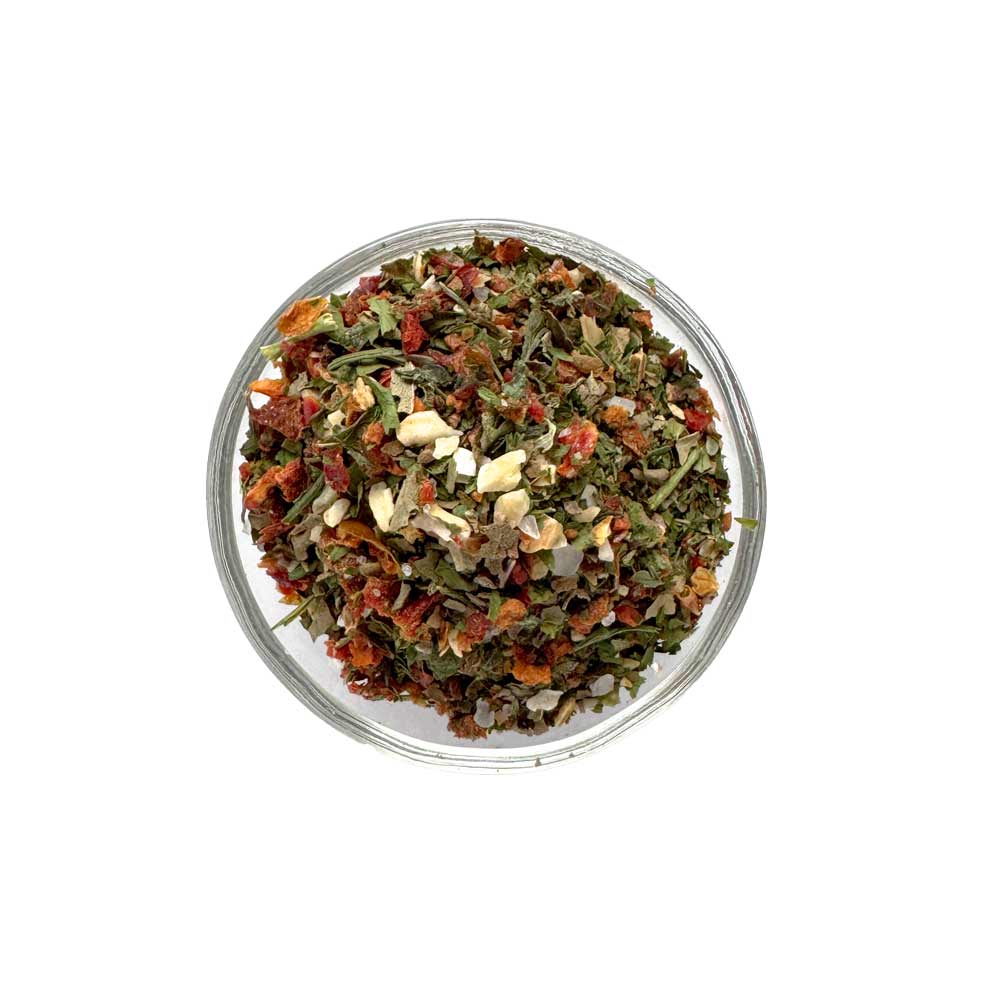 Pesto Calabrese ist die rote Schwester des grünen Genueser Klassikers: In Kalabrien treffen reife Paprika und Chili auf Knoblauch, Kräuter und einen Hauch Zitrus. Unsere Gewürzmischung fängt genau diesen Charakter ein – du rührst sie einfach mit gutem Olivenöl (und auf Wunsch etwas Ricotta oder Frischkäse) an und hast im Handumdrehen ein cremig-rotes Pesto mit authentischer Sommer-Stimmung.