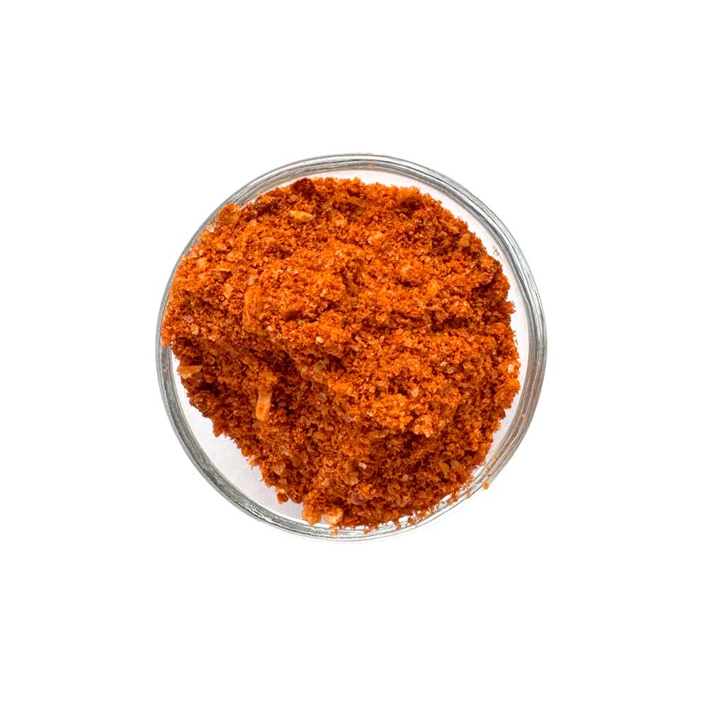 Zutaten: Meersalz, BIO Paprika, BIO Coriander, BIO Zwiebeln, BIO Knoblauch, BIO Cumin, BIO Tomaten, BIO Zitronenpulver (BIO Zitronensaftkonzentrat, BIO Maisstärke, BIO Zucker), BIO Chillies