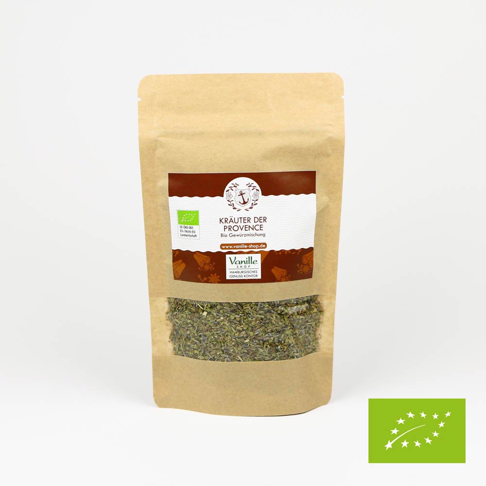 100g Bio Kräuter der Provence aus k.b.A. in einem Aromabeutel. Ideal zum mediterranen Würzen von Gemüse und Salat.