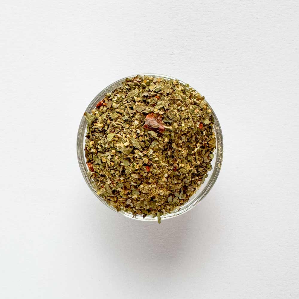 Zutaten: Grüner Pfeffer, Meersalz, Basilikum, Rohrzucker, Knoblauch, Zitronenschalen, Sumach, Chili